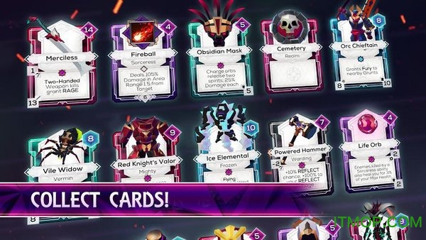 收集不同功能的卡片,包括装备、技能、随从等类型。每张卡片都经过精心设计,具有独特的属性和效果。