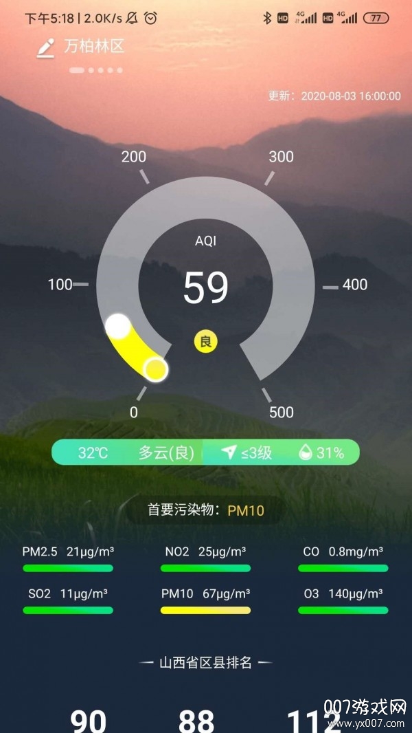 山西空气质量指数版集数据监测、分析预警、生活服务于一体,是您了解山西空气质量的最佳助手。无论是日常出行、健康防护还是生活规划,这款软件都能为您提供专业可靠的支持。立即下载体验,开启您的智能空气质量监测之旅!