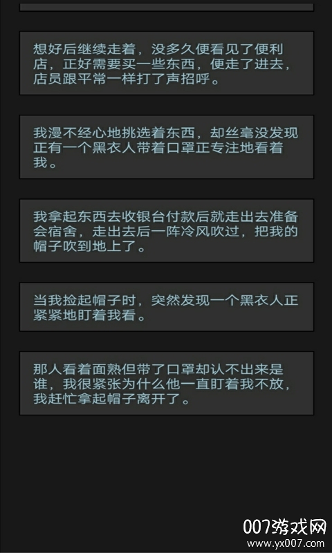 纯式的游戏,整个游戏的剧情都是在一段段的文字描述中所推进的。这种独特的叙事方式让玩家能够更加专注于情节发展,同时也能更好地理解角色内心的情感变化。文字的力量在这里被发挥到极致,让简单的黑白屏幕也能展现出丰富的世界。