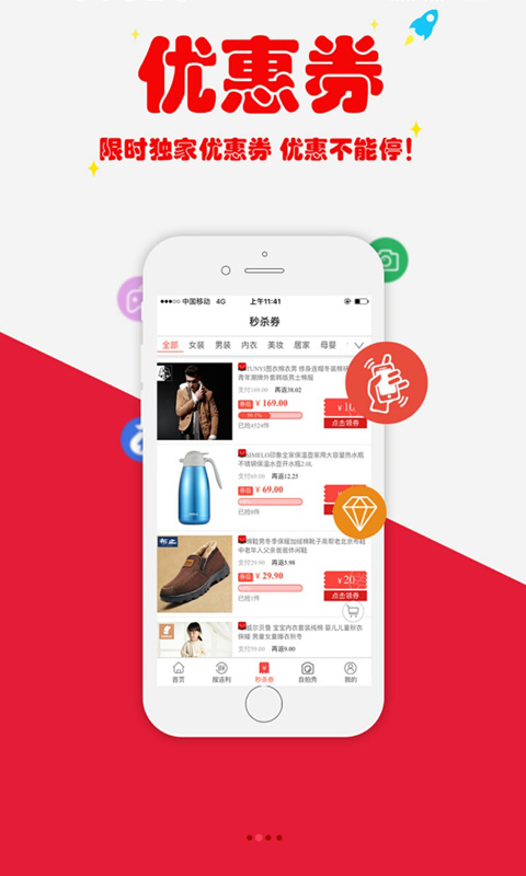 今日福利:平台汇聚了数十万淘宝、天猫商家的专属优惠券和红包福利,通过大数据分析为用户精准推荐最具性价比的商品。每日更新上千款特惠商品,涵盖服饰、美妆、数码等全品类,让用户不错过任何优惠机会。