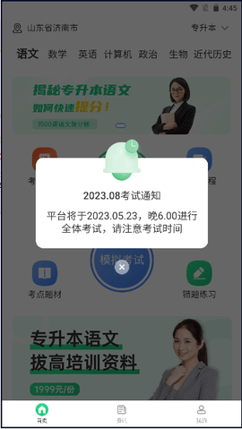 模拟考试:全真模拟考场环境,提供智能组卷和限时答题功能,考后自动生成详细成绩分析报告。