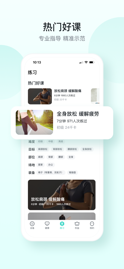【热门好课】除了基础按摩功能,APP还提供由专业健康教练设计的系列课程。这些课程针对不同身体部位设计,包含肩颈放松、腰部舒缓、背部拉伸等专项训练,通过科学指导帮助用户缓解肌肉疲劳,改善体态问题,提升整体健康水平。