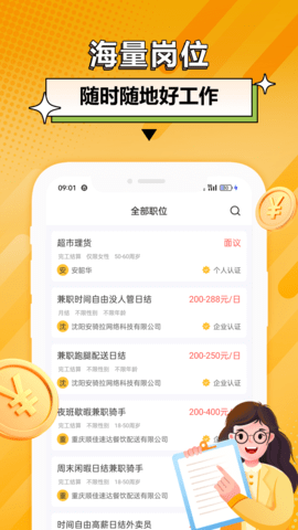 羊羊兼职是一款专为寻找兼职机会的用户量身打造的智能应用,致力于为用户提供高效、便捷的兼职求职体验。作为一款功能强大的兼职平台,羊羊兼职整合了全国范围内的各类兼职资源,从短期临时工到长期固定岗位,从线下实体工作到线上远程任务,应有尽有。无论你是大学生、上班族还是自由职业者,都能在这里找到适合自己的兼职机会。