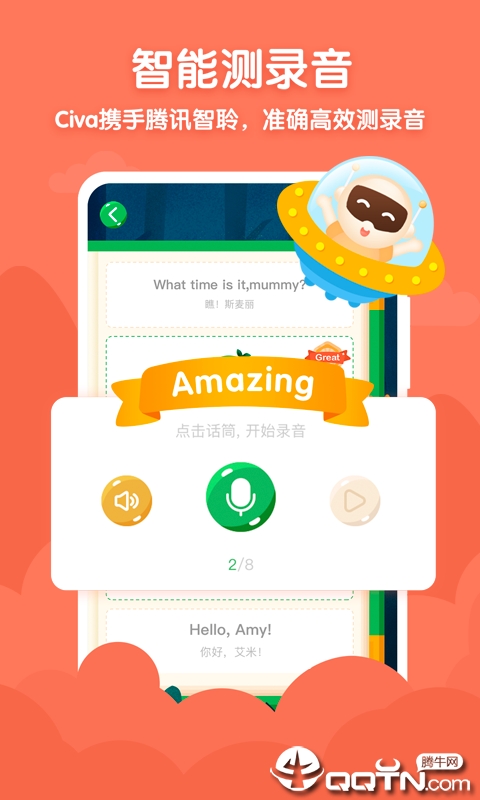与腾讯云深度合作开发的智能评测系统,为英语发音量身打造了一套精准、高效的录音测评体系。通过先进的语音识别技术,实时分析孩子的发音准确度,并提供详细的改进建议。这项功能能够帮助孩子从小培养正确的发音习惯,避免形成错误的口语模式,为未来的英语学习奠定良好基础。