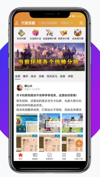 策游吧APP是一款专为《万国觉醒》玩家打造的全新移动应用,集数据查询、攻略分享和社交互动于一体。作为一款功能强大的游戏辅助工具,它不仅提供全服玩家实时排行榜,还拥有海量游戏数据库,涵盖武将属性、战报分析等核心数据。每天更新各类精品攻略和最新游戏动态,帮助玩家快速提升战力。无论是新手入门还是高手进阶,都能在这里找到所需资源,让游戏体验更加轻松高效。