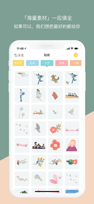 海量手绘精美素材随便贴,每周更新的素材库让你永远保持创作新鲜感。图文拼贴的乐趣妙不可言,拖拽缩放间就能完成令人惊艳的版面设计。