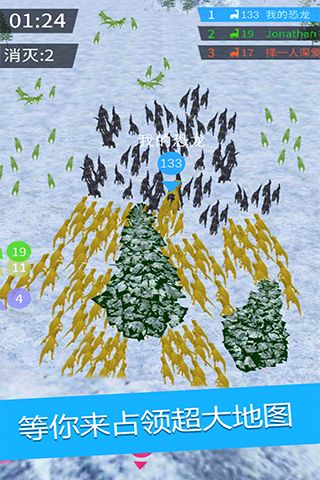 在游戏初期,你需要收编那些单独生存的小恐龙来壮大自己的队伍。这款游戏简单有趣,继承了io类游戏的经典玩法,只需在屏幕上滑动就能轻松操作,让玩家快速找到游戏的乐趣。但不要以为这只是一款考验手速的游戏,战略思维同样重要。比如你可以通过猛踩刹车来快速拦截少数团队的恐龙,然后一举吃掉它们,这种战术运用往往能带来意想不到的胜利。