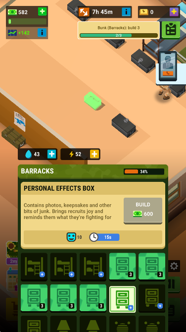 在游戏中,你可以自由地在军事基地开始自己的训练,让自己变得更好、更强。开放式的训练场支持自定义障碍赛道,还能与其他玩家进行实时对抗演练。你需要在场练习自己的手枪和其他射击训练,你需要不断提高自己的子弹命中率。新增的弹道模拟系统会计算风速、湿度等环境因素,专业度堪比真实射击比赛。在军事基地,还有很多事情需要自己进行体能训练,比如翻墙、在泥坑里抬太多木头等等。训练成绩将直接影响士兵的耐力、爆发力等六维属性成长。你将成功通过所有游戏测试,并不断提高你的军衔,变得更加强大和卓越。军衔晋升会解锁新型装甲车、武装直升机等重型装备。你也可以在游戏中不断扩大军事基地,你会把自己的军事基地变成最好的军事基地。新增的蓝图系统允许自由设计指挥中心、雷达站等军事设施布局。