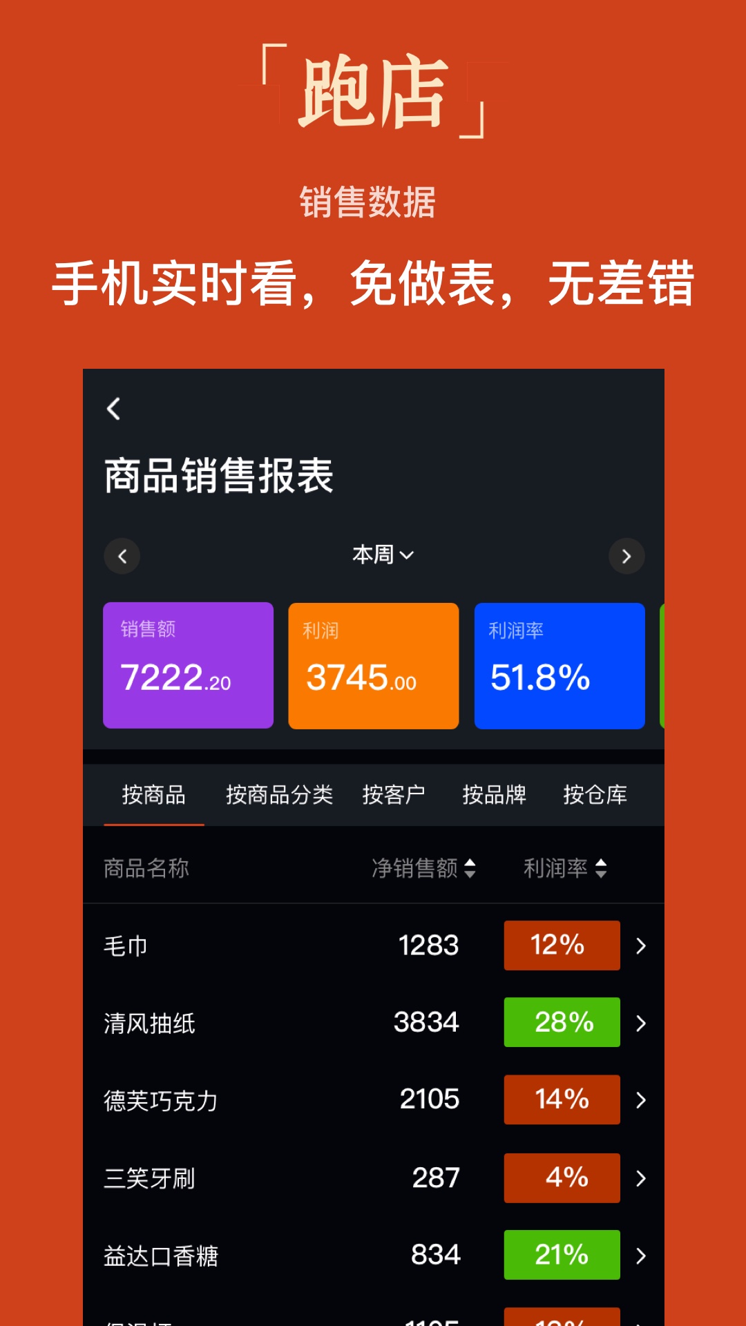 跑店App是业务员、经销商和代理商的高效外勤管理工具,让每位经销商都能像零售通一样轻松管理业务,让每家门店都能享受便捷的下单服务,让每位外勤人员365天在线,随时随地处理工作。