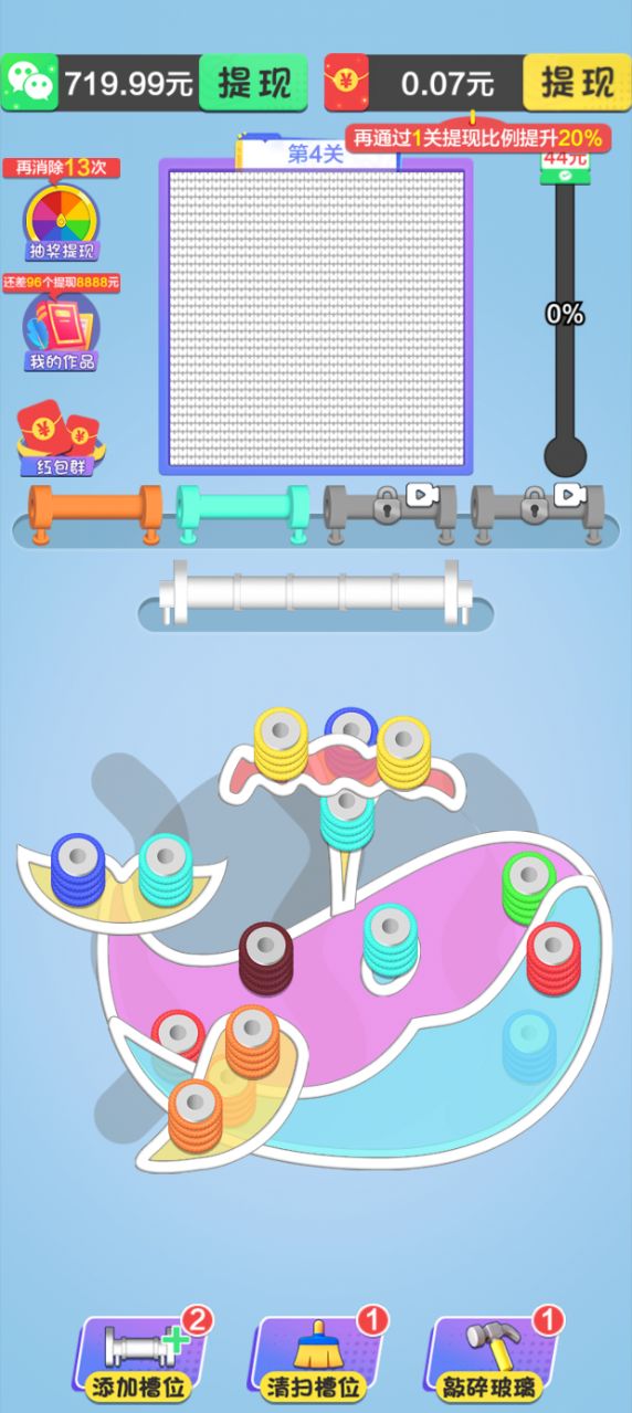 想要在毛线乐园中获得红包奖励并成功提现,操作非常简单。首先,你需要在官方渠道下载并安装毛线乐园游戏。进入游戏后,通过完成各种消除关卡和任务来积累红包奖励。游戏中的红包奖励机制非常友好,只要持续参与游戏,就能获得丰厚回报。当红包金额达到提现门槛时,系统会自动弹出提现提示,按照指引操作即可轻松完成提现。整个过程透明公正,让玩家玩得开心,赚得放心。
