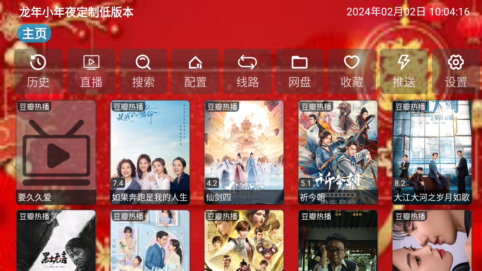 龙年小年夜定制低版本App是一款专为电视盒子用户打造的影视资源聚合软件,内置丰富的仓库源,提供海量免费影视内容。无论是热播电视剧、最新院线电影,还是经典动画片,都能在这里找到。软件界面简洁易用,支持多种分辨率播放,满足不同用户的观影需求。特别适合喜欢追剧的观众,无需注册会员即可享受高清流畅的观影体验,是家庭娱乐的绝佳选择。