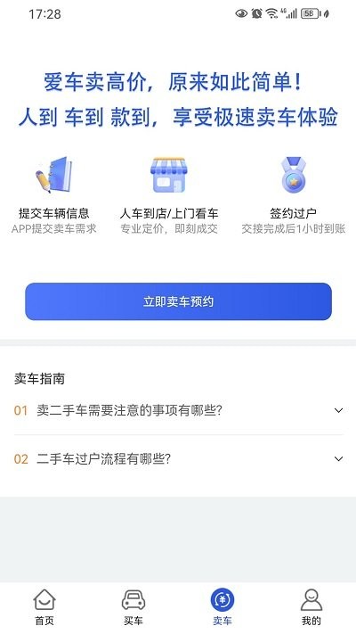 要是想卖车,不用出门找买家,直接在软件上就能预约,等专人联系处理。平台提供专业评估师上门验车服务,确保车辆信息真实可靠,帮助车主获得合理报价。