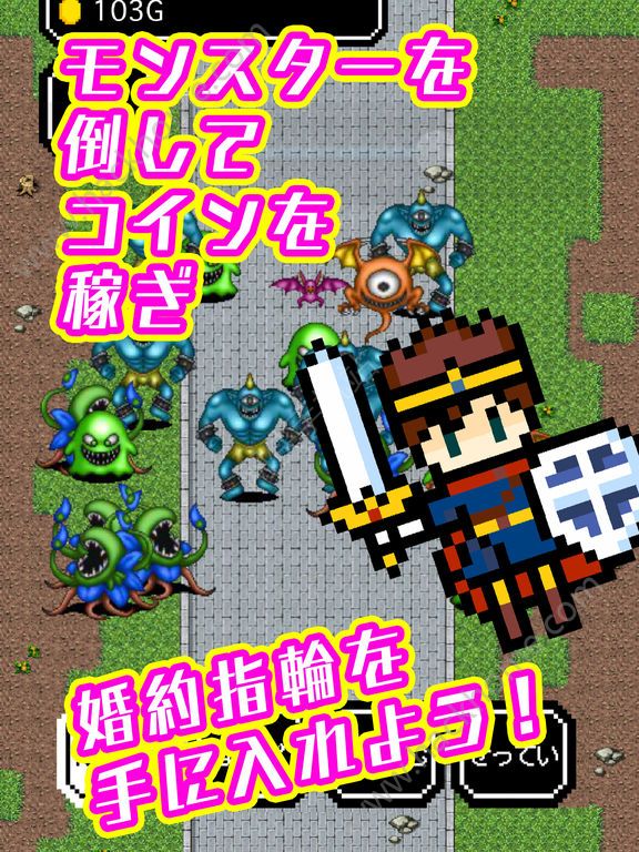 本作采用了简单直观的操作方式,玩家只需点击屏幕上出现的怪物即可发动攻击,这种轻松上手的玩法让各类玩家都能快速融入游戏世界。游戏中的世界地图系统设计精巧,玩家可以随时查看心仪女孩的所在位置,并通过购买结婚戒指来展开浪漫表白。虽然采用了复古的像素风格,但游戏中的角色立绘却异常精美,这种传统与现代的完美结合,加上简单直接的游戏机制,为玩家带来了独特的游戏体验。
