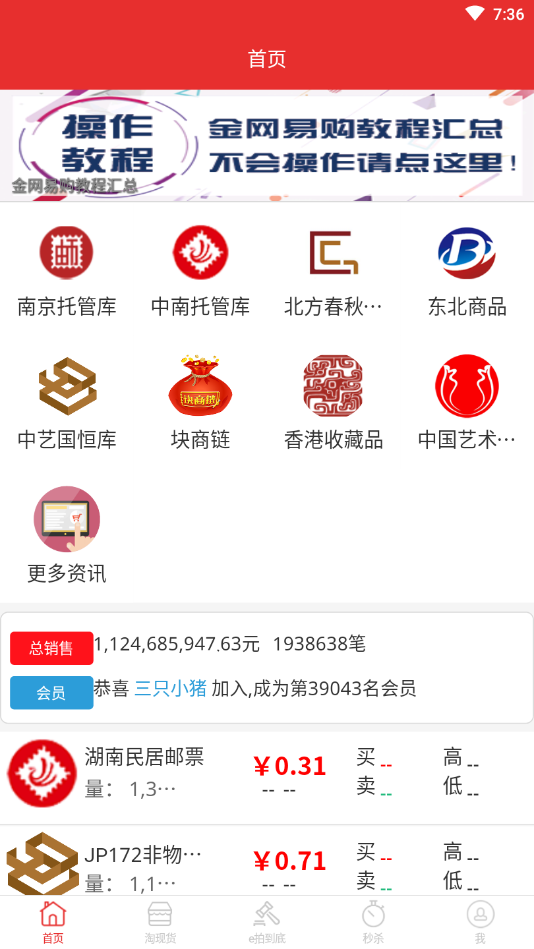 金网易购商城app首页提供多样化的服务功能,包括限时秒杀活动、专业藏品资讯、电子盘实时交易和智能分类检索等。秒杀专区每日更新特惠藏品,让您以超值价格抢购珍品;资讯板块提供行业动态和收藏知识,助您成为更专业的收藏家;电子盘交易功能让您随时随地掌握市场行情;智能分类系统则能快速帮您找到心仪的藏品类别。无论您是想投资收藏还是寻找独特礼品,金网易购都能满足您的需求。