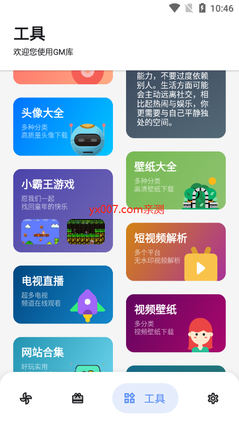 GM库是一个功能强大的软件资源平台,汇聚了海量优质应用和游戏资源,致力于为用户提供一站式的下载体验。无论你是寻找热门游戏、实用工具还是小众应用,这里都能满足你的需求。平台资源分类清晰,更新及时,确保用户能够第一时间获取最新、最全的软件内容。界面简洁友好,操作便捷,即使是新手也能轻松上手。丰富的资源库涵盖了各类玩机需求,从娱乐到工具一应俱全,是广大用户不可或缺的软件宝库。