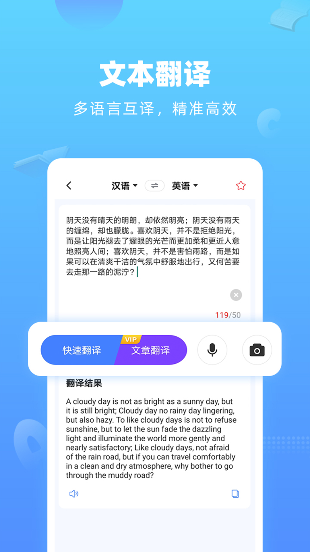 这款翻译工具不仅支持文本翻译,还能识别图片中的文字并进行翻译,尤其适合翻译菜单、路牌、说明书等印刷体文字。其语音翻译功能支持多国语言,发音清晰自然,让沟通更加流畅。软件界面简洁直观,即使是初次使用的用户也能快速上手。同时,它还提供了历史记录功能,方便用户随时查看之前的翻译内容,避免重复操作。