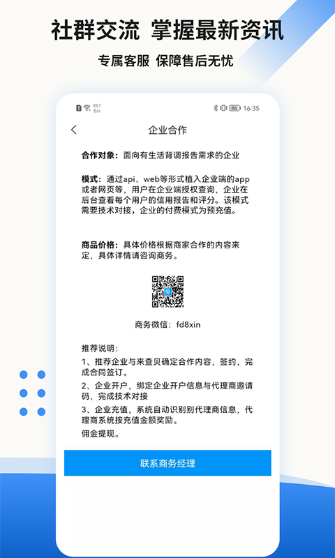 贝融助手App是一款基于人工智能和大数据技术的智能服务平台,致力于为社会民生提供全方位的场景化解决方案。该应用以"数据洞察、风险预警、安全评估"为核心功能模块,通过深度整合多源数据,为用户打造精准的人物背景调查报告。平台运用先进的算法模型,对人物画像、职业履历等关键信息进行智能分析,帮助用户有效识别潜在风险。无论是个人社交安全、商务合作还是日常生活中的各种场景,贝融助手都能提供可靠的数据支持,推动社会诚信体系建设,营造更加安全可信的数字生活环境。