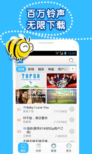 【每日更新】应用团队24小时不间断更新曲库,紧追音乐潮流,第一时间收录最新热门歌曲、影视原声、搞笑音效等各类铃声资源,让您的手机铃声永远走在时尚前沿。