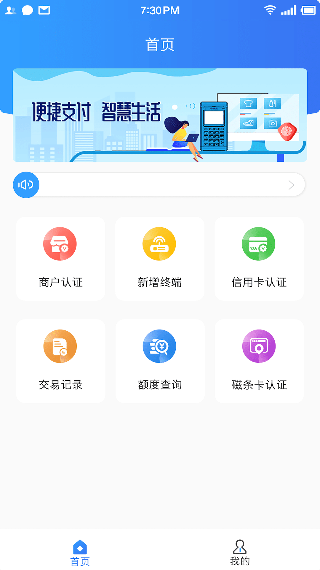 联POSApp的首页功能丰富多样,能够满足商家的各类需求。商户可以通过应用快速完成商户认证,确保账户安全可靠;新增终端功能让商家能够灵活扩展收款设备,适应不同场景的支付需求;信用卡认证功能则为商家提供了更全面的支付支持。此外,商家还可以通过应用实时查询交易记录和额度情况,随时掌握资金动态;磁条卡认证功能进一步提升了支付的兼容性,确保各类银行卡都能顺畅使用。