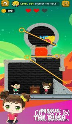 游戏最大的亮点在于其创新的物理解谜机制。玩家需要充分发挥想象力,比如利用水流扑灭火焰,或者通过改变重力方向来创造新的路径。虽然游戏中的角色无法自主移动,但玩家通过控制大头针的拔出顺序和时机,就能完全掌控整个局面。这种独特的游戏机制为玩家带来了前所未有的策略体验。同时,游戏还设置了各种尖刺陷阱和机关,一旦操作失误就会导致失败,需要玩家反复尝试和思考最佳解决方案。