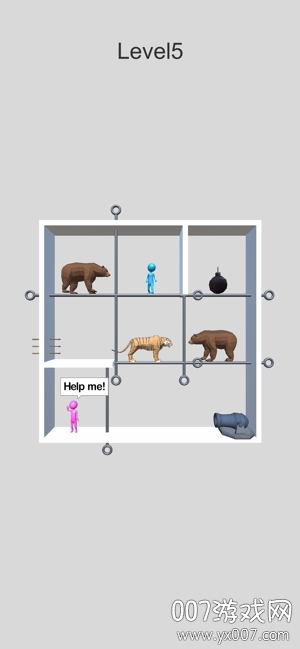 没有任何道具可以使用,你可以依靠的只有自己的头脑,考验大家的智商。游戏采用真实物理模拟,别针转动角度会影响角色弹射轨迹,需要精确计算。