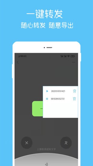 【语音一键转发】这个功能专为解决用户转发语音内容的需求而设计,支持将语音快速转发到微信、QQ等主流社交平台。用户只需简单操作就能实现语音内容的跨平台分享,大大提升了沟通效率。