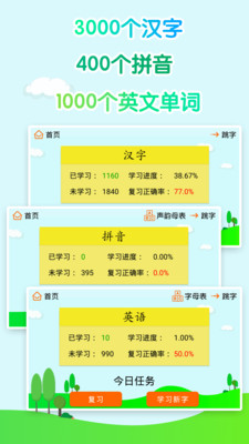 在最新版本中,宇艺识字app新增了拼音学习和复习功能,进一步完善了语言学习体系。现在用户可以在一个应用中完成汉字、拼音和英语的全面学习,大大提高了学习效率。