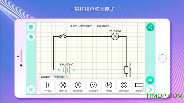 让电路知识从死板的电路图升级为实物,还有那么多设备,还不怕触电。应用采用游戏化设计,完成实验可获得成就奖励。内置的挑战模式提供渐进式实验任务,从基础电路到复杂系统循序渐进,让学习充满乐趣。