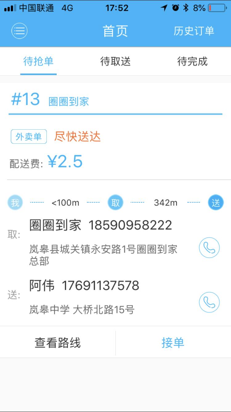 圈圈到家配送端
