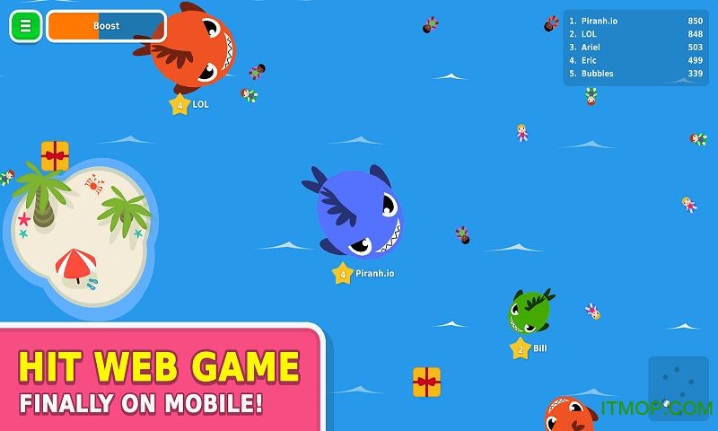鲨鱼大作战(Piranh.io)是KiemuraLtd.开发的一款创新RPG类游戏。作为io游戏家族的新成员,本作将传统吞噬玩法与海洋生态完美结合,虽然核心玩法延续了io类游戏的经典模式,但开发者通过精细的鱼类建模和动态水域效果提升了整体沉浸感。游戏支持全球玩家实时匹配,你可以与来自不同国家的对手在同一个海域竞技,体验弱肉强食的海洋法则。目前游戏已在GooglePlay和AppStore同步上架,并持续更新更多海洋生物角色。