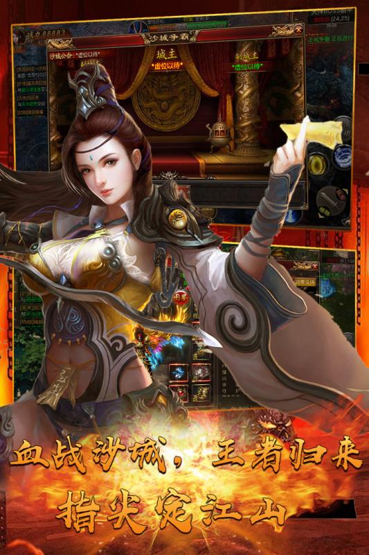 百人同屏,共战沙城,王者归来,夺得沙城城主之位,获取屠龙宝刀,号令天下。每周六晚的沙城争霸战是游戏最激动人心的玩法,数百名玩家同场竞技,争夺至高荣誉。获胜行会将获得专属城主称号和稀有道具奖励,享受万人敬仰的荣耀。