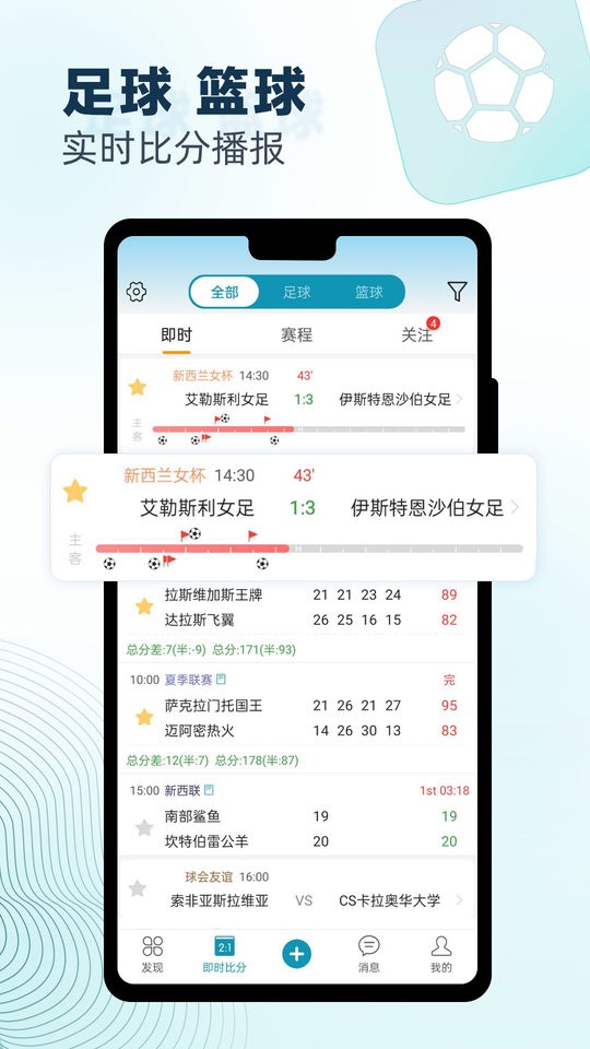 一个比分页面,掌握全球足球篮球探比赛比分动态;