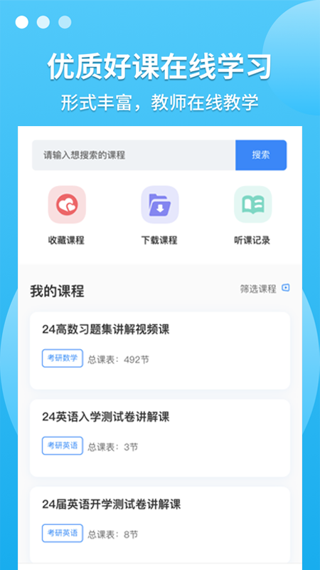 聚创考研在线app是一款专为考研学子量身打造的全方位学习备考助手,致力于为用户提供高效便捷的学习体验。通过这款应用,用户可以随时随地进行在线学习,无论是听课、刷题还是查漏补缺,都能轻松实现。聚创考研在线app汇聚了海量优质教学资源,帮助考生系统化备考,全面提升考试成绩。无论你是刚开始准备考研,还是已经进入冲刺阶段,这款应用都能满足你的学习需求,助你一战成硕。