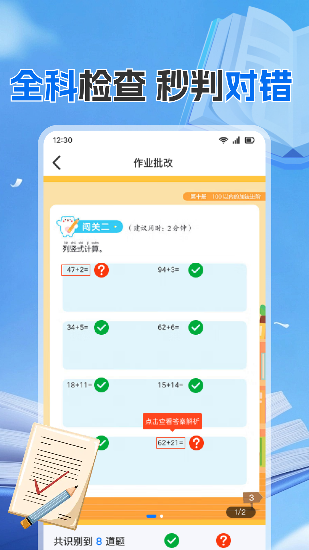 作业批改一拍出答案的核心功能包括快速拍照识别、自动批改和答案解析。用户只需将作业题目拍照上传,系统便会自动识别文字和公式,并给出正确答案及解题步骤。此外,软件还能根据学生的答题情况生成个性化的学习报告,分析知识掌握程度。对于复杂的题目,系统还提供视频讲解和同类题型练习,帮助学生深入理解知识点。这些功能不仅提高了学习效率,还能让学生更有针对性地查漏补缺。