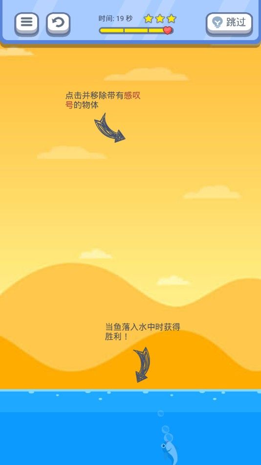 游戏采用渐进式难度曲线设计,随着关卡推进,玩家将面临更复杂的救援环境和更多变的物理挑战。某些特殊关卡中,鱼儿距离水域异常遥远,这时就需要巧妙利用场景中的各类辅助道具来达成目标。游戏内置了丰富多样的创意道具系统,从能改变重力方向的气球到可以制造弹射效果的跷跷板,甚至是能形成连续反弹的滑梯装置,每个道具都能带来全新的解谜思路,让游戏过程充满惊喜与乐趣。