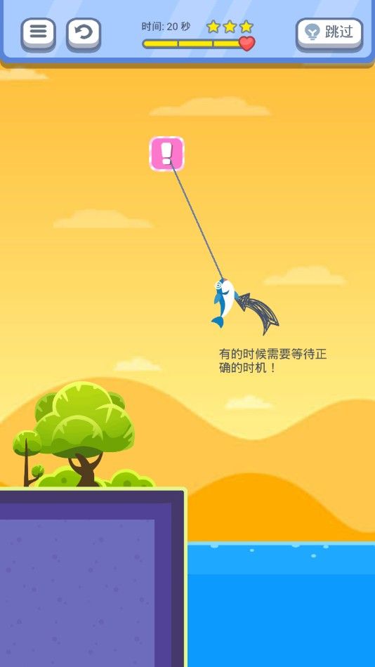 游戏采用极简操作设计,只需轻触屏幕即可完成救援动作,但需要玩家具备出色的空间预判能力。绳索的物理摆动轨迹完全遵循真实力学原理,每次摆动都会呈现不同的抛物线,为游戏增添了丰富的策略性。当鱼儿被悬挂在陆地上空时,玩家必须精准把握绳索摆动到水域上方的瞬间,这种紧张刺激的救援体验令人欲罢不能。部分高难度关卡会设置严格的时间窗口,绳索在最初几秒的大幅度摆动是唯一的救援机会,犹豫不决就会错失良机,这种设计大大提升了游戏的挑战乐趣。