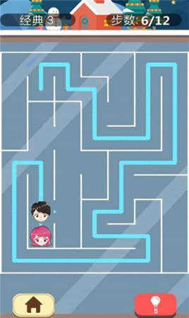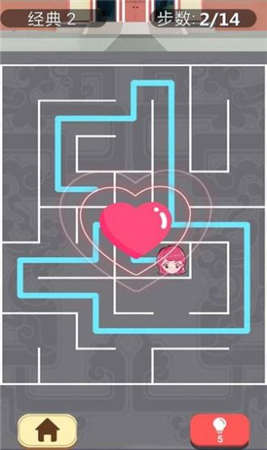 游戏设定在一个充满浪漫气息的迷宫世界,每关都讲述着情侣间的小故事。玩家需要提前规划路线,因为系统会严格计算步数消耗。前期的教学关卡会帮助玩家熟悉基本操作,之后难度会呈阶梯式上升。特别值得一提的是,游戏加入了"回忆相册"系统,每当成功通关就会解锁一张情侣合照,这些温馨的彩蛋让游戏过程充满惊喜。随着关卡深入,还会出现动态变化的迷宫和特殊道具,大大增加了游戏的可玩性。