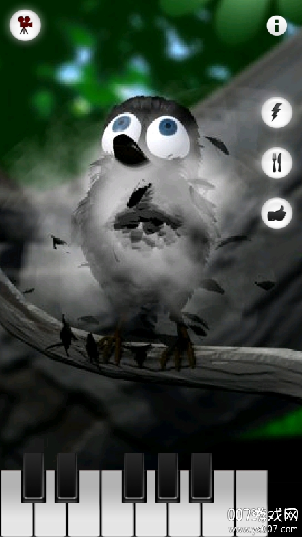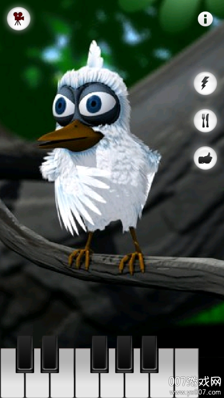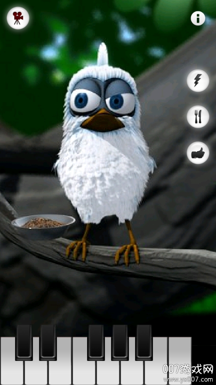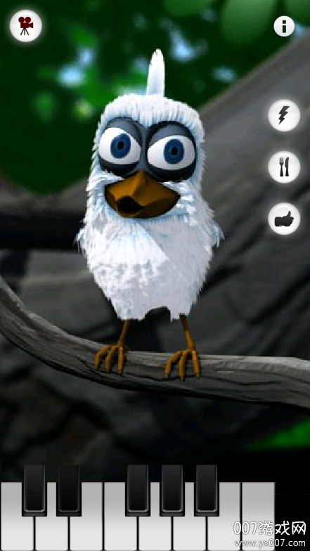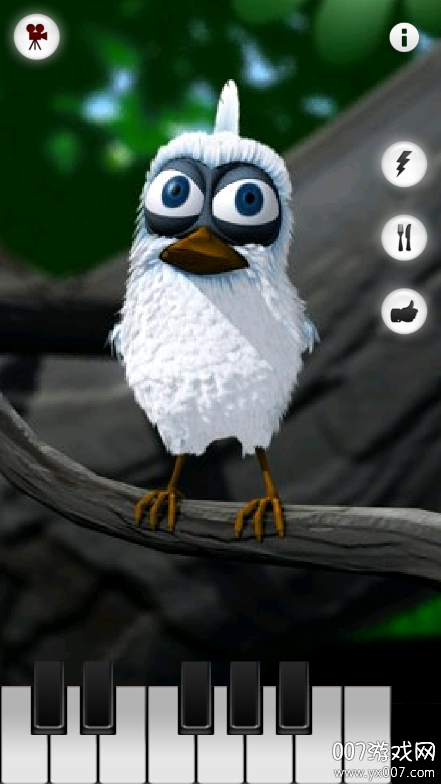 打开游戏后,首先映入眼帘的是一只站在树枝上的白色拉里鸟。玩家可以通过点击屏幕右侧的钢琴键盘,让拉里吹奏出悦耳的口哨声。游戏界面右侧设有多个互动按钮,包括喂食、电击等趣味功能,点击即可触发不同的互动效果。玩家还可以通过麦克风与拉里对话,它会用滑稽的语调重复你说的话。此外,定期给拉里喂食可以解锁更多有趣的互动内容,让游戏体验更加丰富多彩。