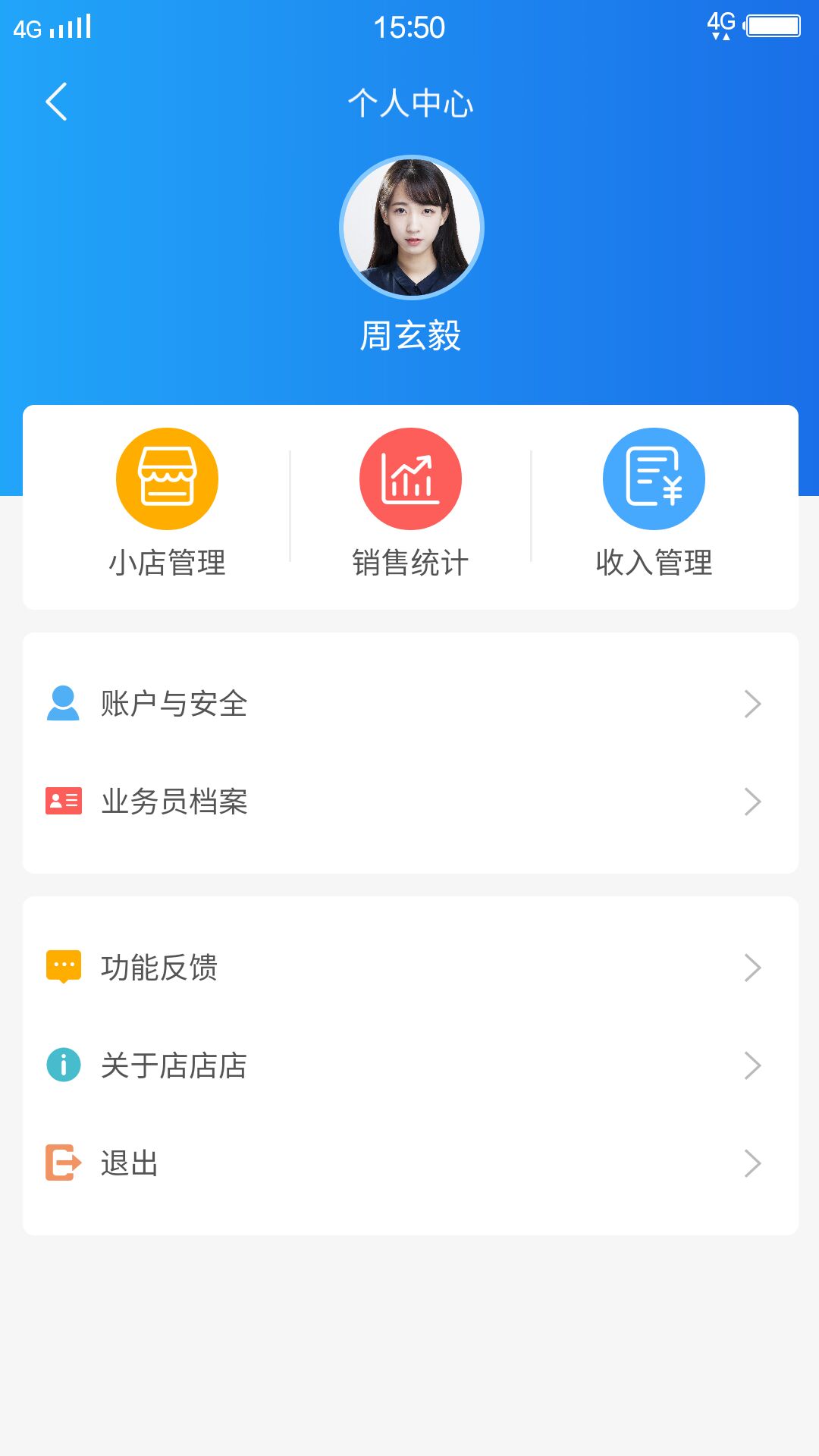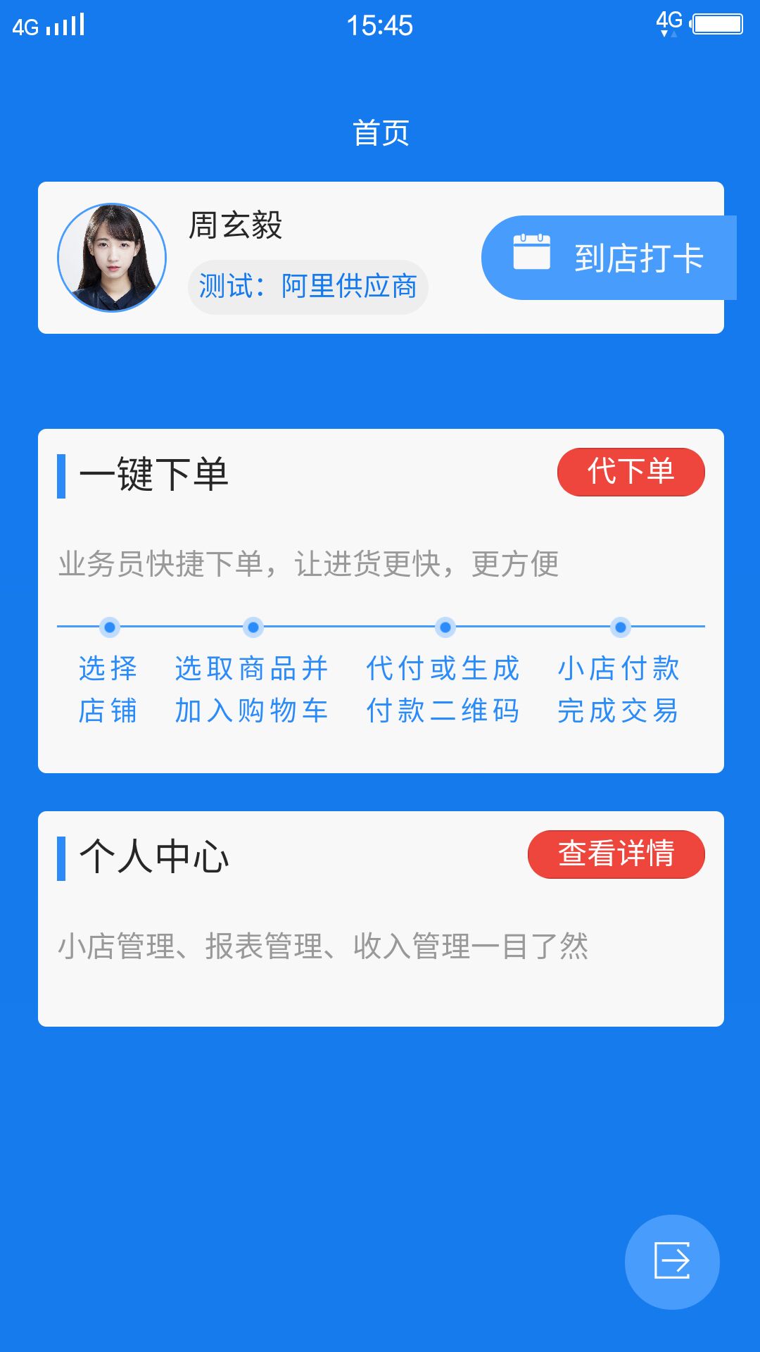 个人中心管理:在此查看店铺运营数据、业绩报表和个人工作记录;