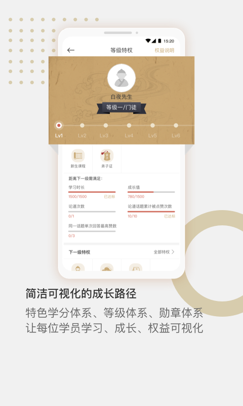 授业功能模块新增课程目录,按"基础-进阶-大师"三级体系分类,新增课程学习进度追踪和知识图谱可视化功能;