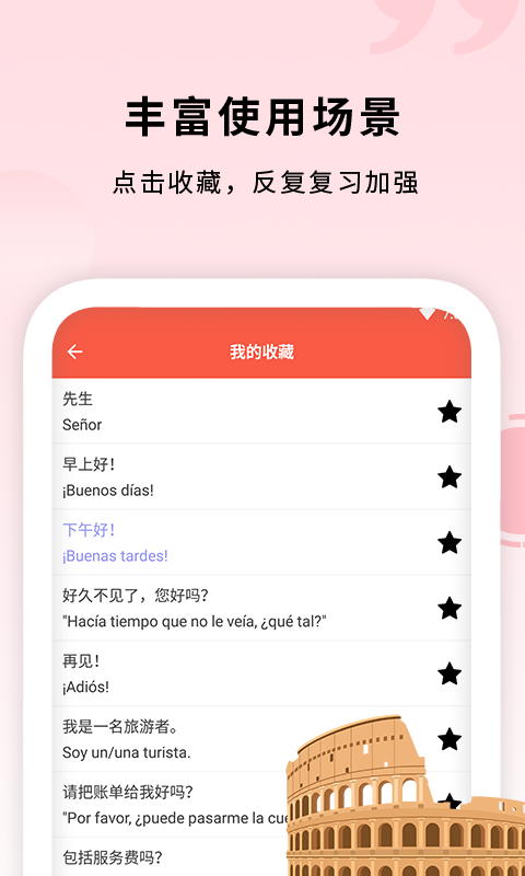 特点三:日常生活用语及常用西班牙语词汇 - 精选大量实用日常用语和常用词汇,让学习内容更贴近实际生活需求。