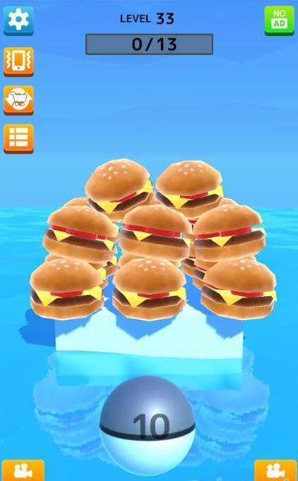 这款游戏采用的类似打保龄球的抛球撞击物理玩法,简单的操作新手也能快速的上手体验。立体的堆叠物品需要你利用手中的球球来击倒,瞄准方向将你手中的球抛出,争取使用最少的球成功的击倒所有的物品。游戏物理效果真实自然,每次碰撞都带来令人满意的反馈,看着目标物品应声倒下的瞬间充满成就感。轻松的玩法非常适合琐碎的时间,画面也很清爽,放松心情娱乐一下挺不错的。场景丰富多样,你需要击倒的不仅仅是方块,还有汉堡薯条等造型可爱的食物模型,让整个游戏过程充满童趣与欢乐。