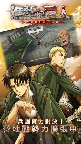AOTv2.0(进击的巨人)是一款根据超人气动漫《进击的巨人》改编而成的动作冒险类手机游戏。在这款游戏中,玩家将化身为自由之翼兵团的一员,追随兵长利威尔的脚步,为人类最后的希望而战。游戏采用独特的半即时战斗玩法,完美还原了原作中经典的立体机动装置操作,玩家需要熟练掌握这项装备才能在巨人横行的世界中生存下来。