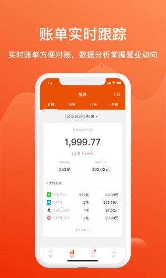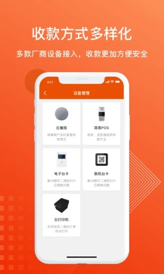【智能收款】支持微信、支付宝、银联等多种主流支付方式,商户可一键开通所需收单渠道,消费者扫码即付,资金实时到账,收款过程安全快捷。同时支持POS机刷卡支付,满足不同消费场景需求。