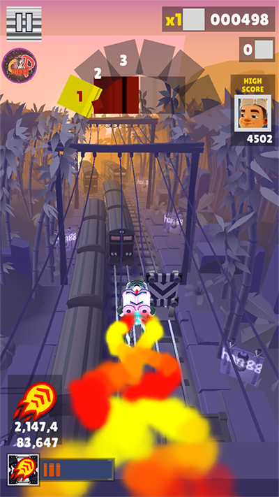 巧妙使用滑板是提高得分的关键策略之一,双击激活滑板不仅能获得双倍得分,还能触发独特的滑板特效,帮助角色更好地应对复杂地形。此外,不要忽视沿途的金币收集,虽然单个金币得分不多,但积少成多,在最终结算时会形成可观的分数加成。记住,高分的关键在于道具、滑板和金币的综合利用,需要玩家在高速奔跑中保持敏锐的观察力和快速的反应能力。