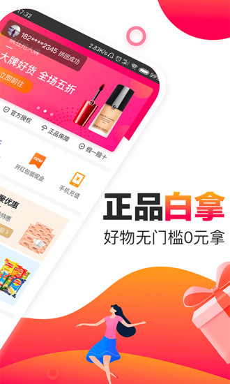 0元白拿:精选各大品牌优质商品,通过邀请好友助力即可0元获得,每日限量上新,机会难得;
