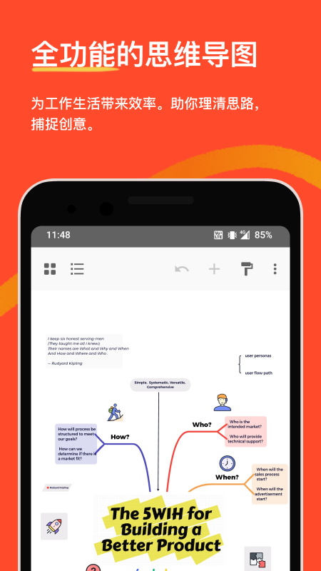 插入:支持在主题中插入本地图片、语音备注、方程、标签、链接、手绘等丰富的主题元素。这些元素的加入让思维导图不再单调,可以承载更多维度的信息。