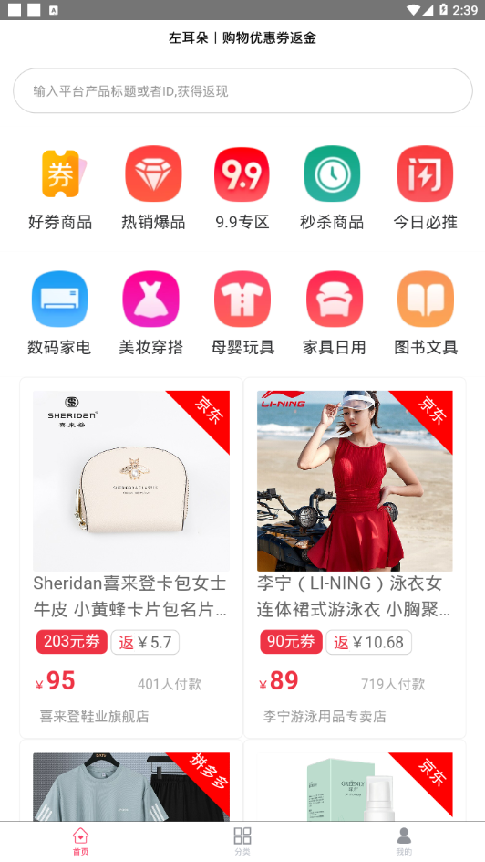 汇聚各大主流电商服务平台优惠,让广大用户能够花小钱买好货;平台已接入淘宝、京东、拼多多等10余家电商巨头的API接口,实现优惠信息实时同步,确保用户总能获取最新最优价格。能够领取各种优惠券、隐藏券,、自购省钱,还有返利、现金红包;平台开发了智能领券机器人,可自动为用户匹配最优优惠组合,同时提供购物返现和积分兑换等多重福利。操作,无需任何门槛,每天都会赠送各类商品的优惠券,直接限时领取。应用界面采用极简设计,新用户注册即送188元新人礼包,每日登录可领取随机现金红包,让省钱变得简单有趣。