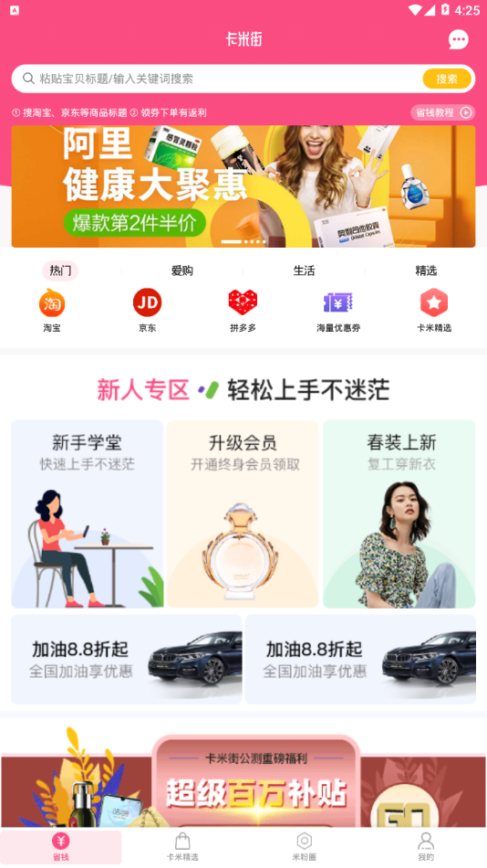 卡米街APP是一款创新的购物省赚平台,汇聚了淘宝、京东等主流电商的海量优惠资源,为用户带来前所未有的省钱体验。平台不仅提供丰富的精选爆款商品,更独创了分享赚钱模式,让用户在享受购物优惠的同时,还能通过推广获得额外收益。无论是精打细算的消费者,还是渴望创业的年轻人,都能在这里找到适合自己的机会。平台操作简单便捷,商品种类齐全,优惠力度大,是您日常购物和创业增收的理想之选。