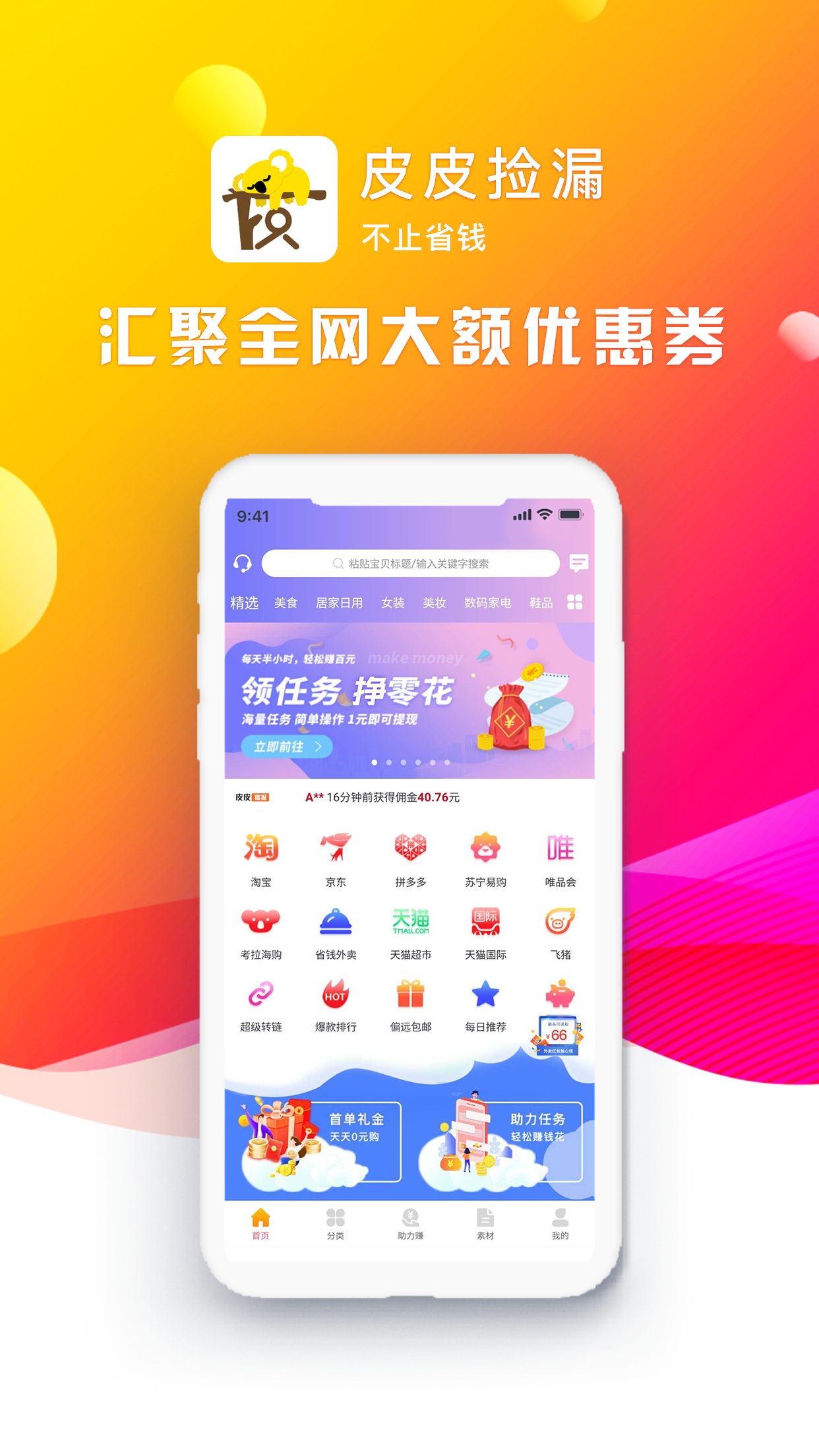 皮皮捡漏是一款专为精打细算用户打造的移动购物神器,平台整合了全网超值商品与隐藏优惠券资源,让您享受"先领券后下单"的智慧消费体验。每天更新数万款特价好物,从日用百货到数码家电应有尽有,配合独家首单礼金和限时秒杀活动,轻松实现"购物省一半"的消费目标。平台采用智能比价系统,自动筛选全网最低价商品,更有专业买手团队严选品质好货,让您花得更少买得更好。